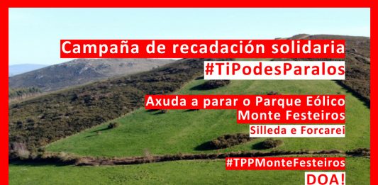 Precisamos da t煤a axuda para frear o parque e贸lico Monte Festeiros que se ubica nos concellos de Silleda e Forcarei. Parroquias afectadas: Meav铆a, Acibeiro, Xestoso, Graba, Forcarei, Quintill谩n, D煤as Igrexas, Pereira, Refoxos, Siador, Fiestras, Margaride, Negreiros, Breixa e Saidres. Posto que o parque trae asociadas tres li帽as de alta tensi贸n. Este parque, que suma 10 … Segue lendo 饾棧饾棩饾棙饾棖饾棞饾棪饾棓饾棤饾棦饾棪 饾棗饾棓 饾棫饾棬饾棓 饾棓饾棲饾棬饾棗饾棓, para 饾棾饾椏饾棽饾棶饾椏 饾椉 饾椊饾棶饾椏饾椌饾槀饾棽 饾棽贸饾椆饾椂饾棸饾椉 饾棤饾椉饾椈饾榿饾棽 饾棛饾棽饾榾饾榿饾棽饾椂饾椏饾椉饾榾