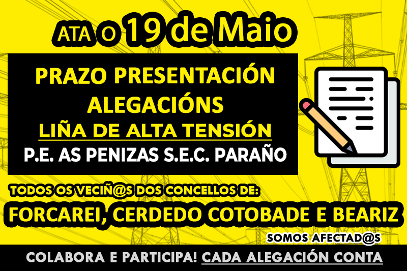 PRESENTACIÓN DE ALEGACIÓNS até o 19 de Maio .